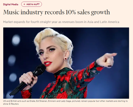 去年全球音乐行业的复苏步伐加快,销售额增长近10%,拉美和亚洲的繁荣帮助抵消了欧洲的停滞。国际唱片业联合会(International Federation of the Phonographic Industry)周二表示,全球营收增长9.7%,至191亿美元,高于2017年7.4%的增幅。