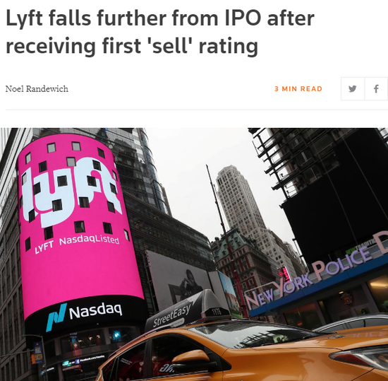 Seaport Global率先将Lyft的评级定为“卖出”,目标价为42美元。分析师迈克尔-沃德(Michael Ward)称,Lyft目前的估值建立在“信心的飞跃”上,即相信未来消费者将放弃拥有汽车,转而依赖叫车服务。