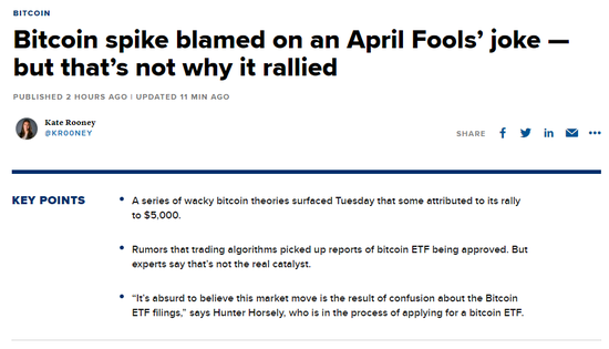比特币也未能幸免于愚人节的玩笑。其中一个恶作剧因被怀疑推高了世界上最大的加密货币的价格而获得了关注。