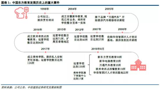 作为新东方烹饪学校的母公司,东方教育在烹饪技术、信息技术及汽车服务等三个分部所提供的职业技能服务均处位列中国第一,目前已在29个省份及香港,运营139所学校。