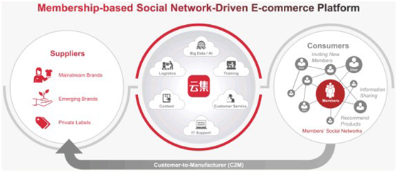 云集是一家由社交驱动的精品会员电商,为会员提供美妆个护、手机数码、母婴玩具、水果生鲜等全品类精选商品。通过“精选”供应链策略以及极具社交属性的“爆款”营销策略,聚焦商品的极致性价比吸引用户。