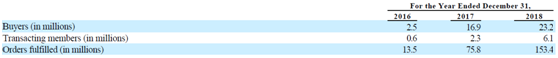 公司2016年、2017年、2018年买家数分别为250万、1690万和2320万,付费会员则分别达90万、290万和740万,总订单量分别为1350万、7580万和1.53亿,GMV分别达18亿、96亿和227亿,均保持较高增长水平。
