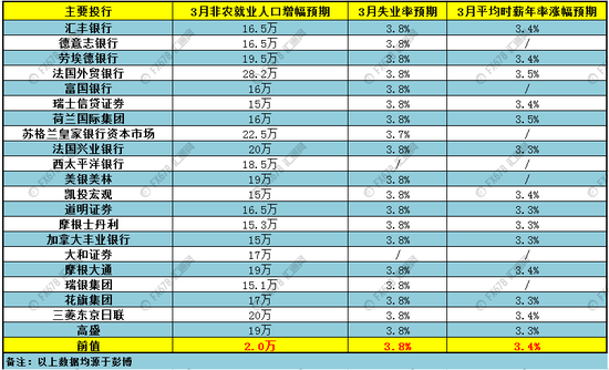 北京时间周五(4月5日)20:30将公布美国3月季调后非农就业人口变动和失业率,周三(4月3日)包括摩根士丹利(Morgan Stanley)在内的21家大型投行发表了对此次数据的前瞻,具体如下。
