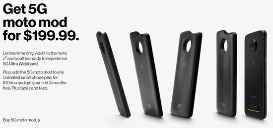 今日威瑞森也宣布,搭配摩托罗拉Moto Z3智能手机使用的配件Moto mod正式全面上市,税前售价199美元,Moto Z3手机售价480美元,特定折扣可以减少240美元。使用威瑞森多种无限量移动数据套餐包的客户可以每月多花10美元,获得无限量的5G数据包,前三个月5G数据免费。