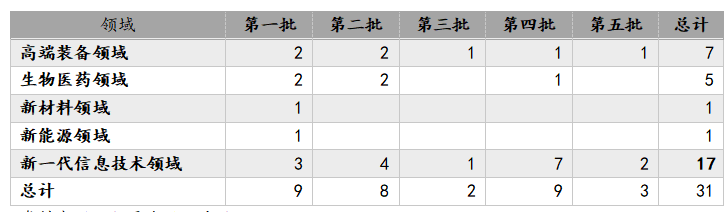 第一,受理企业科创属性明显,一半以上都是“新一代信息技术”领域的企业。每批受理企业中新一代信息技术领域的占一半以上。此外,前五批31家企业中均无节能环保领域企业。
