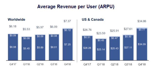 此外,尽管受到数据风波冲击,18年最后一个季度日活同比增长8.7%,月活同比增长8.9%。另外,变现角度,平台每用户贡献的平均收入大增19%,其中美国及加拿大地区增速高达30%。公司开始瞄准的对象是Instagram,未来待释放潜力的还有Messenger及WhatsApp。