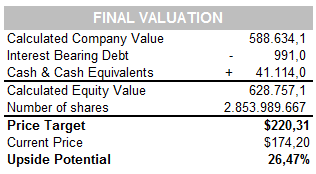 整体计算可得,公司目标价为220美元,与当前价有近26%的增长空间。