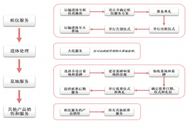 殡葬行业由殡仪服务、遗体处理、墓地服务和其他产品销售服务四大部分组成,其中遗体处理比较特殊,由政府专门管理。所以福寿园的主要业务是其他三部分。