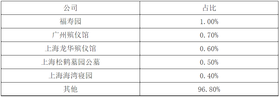 中国殡葬业中,福寿园以1%的市占率排名第一,是当之无愧的行业龙头。在港股上市的殡葬公司中,中国生命集团(08296)、福泽集团(08108)以及安贤园中国(00922)都是股价不足1港元的仙股,所以福寿园也一直是港股殡葬概念的首选投资标的。