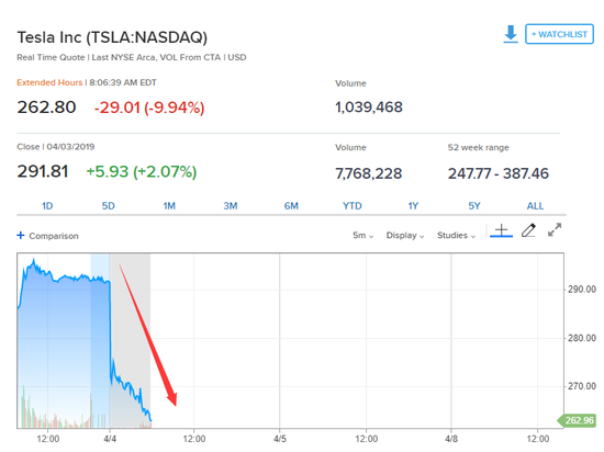 一季度交付量公布后,投行纷纷下调特斯拉目标价。摩根大通将特斯拉目标价由215美元下调至200美元;加通贝祥将特斯拉目标价由450美元下调至391美元。上一交易日,特斯拉收盘价约为291美元。