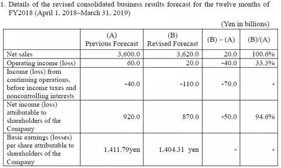另据4月1日消息,根据股份购买协议的赔偿条款,东芝将向东芝存储公司支付4500万美元(约50亿日元)赔偿,这一损失将计入东芝2018财报。东芝在2018财年Q3财报中预估2018财年(2018年4月1日至2019年3月31日)营收从3.6兆日元上调至3.62兆日元,营业利润从600亿日元下调至200亿日元。