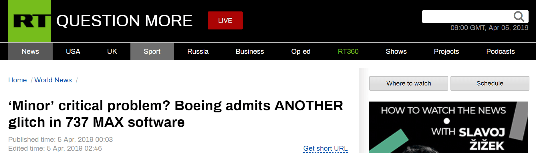 就在埃塞航空难报告发布后不久,波音CEO米伦伯格4日晚首次向公众承认,是飞机的自动防失速系统(MCAS)导致了这两起近350人死亡的空难。然而,出问题的似乎并不仅仅只有MCAS,“今日俄罗斯”在4月5日的报道中称,波音公司周四承认,737 MAX的软件系统还存在一个“相对较小”,但对飞行安全存在重要影响的问题。