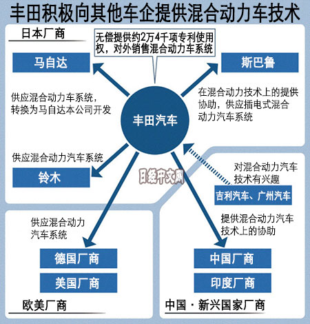 日本另一家汽车厂商铃木3月与丰田就从丰田获得混合动力车系统达成协议,对于已经提供混合动力车技术的合作对象来说,将省去专利费负担。