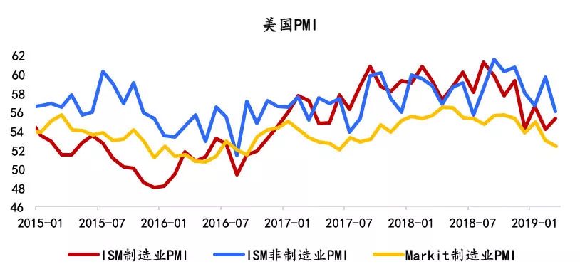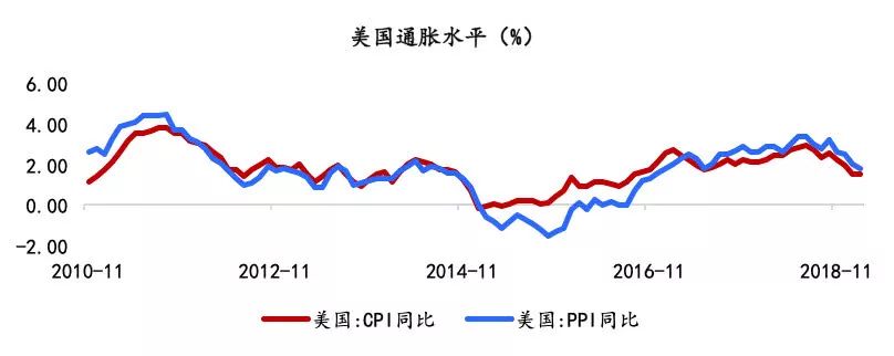 2019年以来,美国经济数据亦是好坏参半。2月美国非农就业大幅不及预期,非农就业岗位仅增加2万个,为2017年9月以来最小增幅,部分原因是前两个月大幅增长。从工业产值来看,在1月大跌0.6%之后,尽管2月份美国工业生产总体数据确实有所改善,增长0.1%,但远低于预期值0.4%。3月制造业PMI指数为52.5,跌至21个月新低。消费数据来看,美国1月零售销售增长0.2%,高于预期的-0.1%,但美国12月零售销售月率从-1.2%下修为-1.6%。2月CPI同样未达到政策目标设定的2%的水平。短期疲态的美国经济数据或许说明美国经济正站在一个重要拐点上。