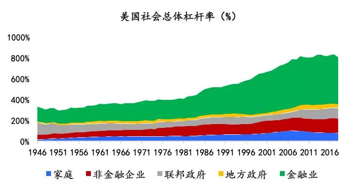 财政政策方面,政府债务风险亦不容小视。从资产负债表修复的角度来看,不难发现,金融危机以来,美国宏观杠杆率并未出现明显改善,美国社会总体债务2017年达到835%的历史高点,高于十年前的800%。从结构来看,家庭部门的杠杆率有所回落,从2017年的100%下降到2018年的78%;金融企业与非金融企业的杠杆率基本稳定,分别保持在450%、130%上下。但联邦政府债务却大幅攀升,随着危机以来美国政府对于金融机构施行的一系列救助计划,叠加随后为经济增长而实施的刺激计划,联邦政府的负债率由危机前的55%上升至2018年的接近100%。美国政府债务问题持续攀升,也将限制未来的积极财政空间。