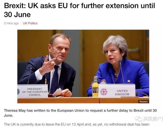 刚刚,英国当地时间4月5日早晨8点左右,英国首相特蕾莎梅向欧洲理事会主席图斯克提交申请,要求将脱欧期限再次延长至6月30日。