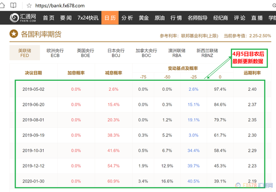 3月非农就业报告显示,薪资增速意外回落至3.2%,截至20:47,联邦基金利率期货目前暗示市场预计美联储2019年年内加息概率为零,降息概率为回升至54.7%,预计在12月会议上降息;如果美联储年内不降息,那么2020年1月会议上降息的概率为60.9%。