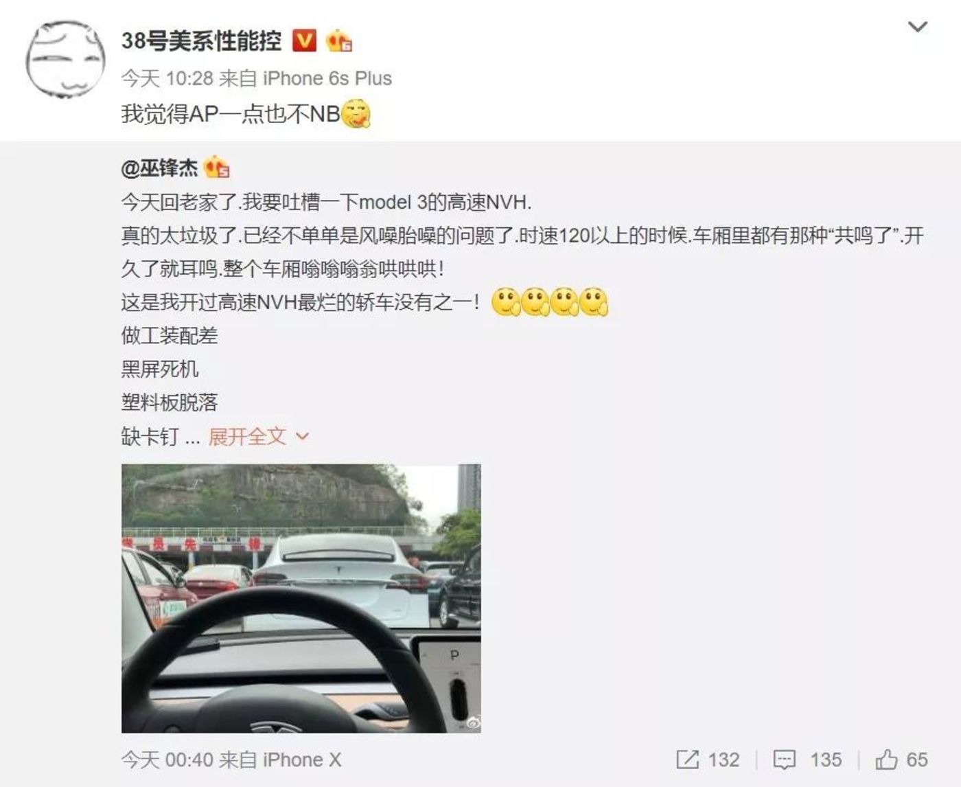 昨天上午 10:28,知名车评人 38 号美系性能控(以下简称 38 号)转发了一条微博表示:我觉得 AP 一点也不 NB。在随后的微博中,38 号进一步说明了 AP 不 NB 的依据:作为一个车主,AP 不好用、危险,用户体验很差,所以不够 NB。