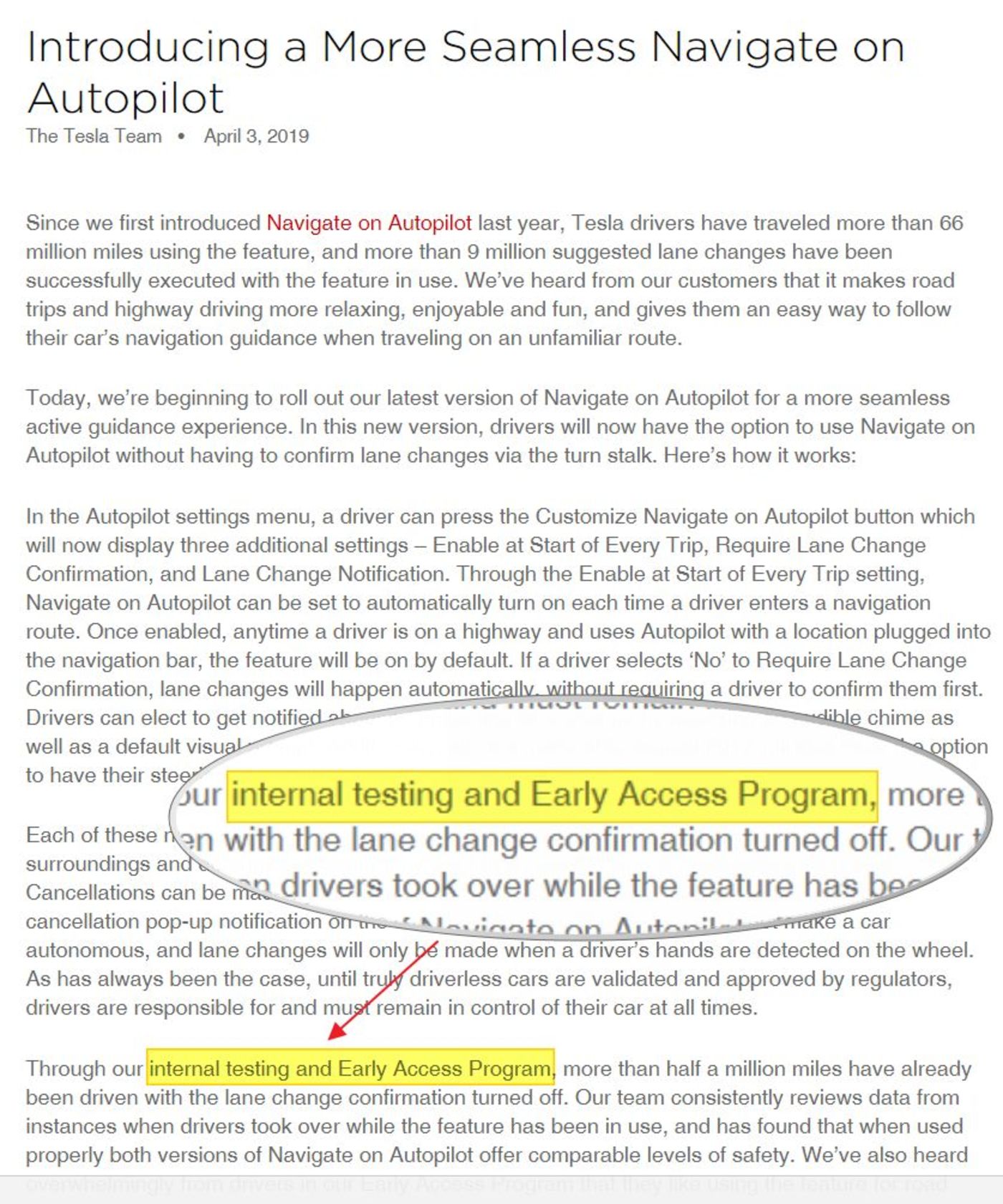 当然,不是说 Bug 修复了‘大家就当无事发生过’。实际上,这个 Bug 暴露了特斯拉 AP 团队一个相当严重的问题。众所周知,特斯拉在北美发起了一个名为早期测试项目(Early Access Program),主要由特斯拉员工车主 + 核心粉丝车主组成。