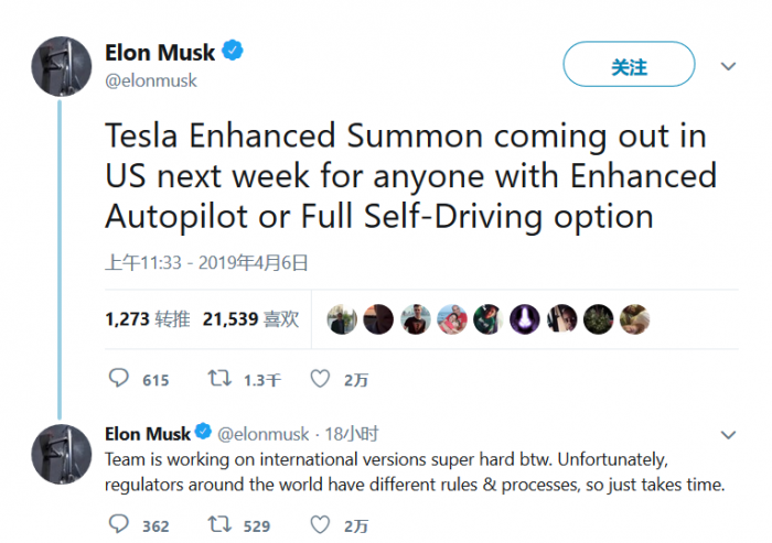 去年底,特斯拉首席执行官伊隆·马斯克表示,该公司名为 “增强型召唤(Enhanced Summon)”的自动泊车功能将于2019年初通过OTA更新形式推送给众车主。马斯克通过最新推文上称,这一功能OTA更新最终将在下周于美国上线。