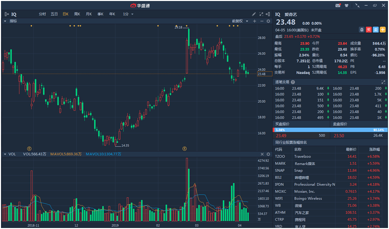 此前广电“限古令”被爆出,3-6月包括武侠、玄幻、历史、神话、穿越、传记、宫斗等在内的所有古装题材网剧、电视剧、网大都不允许播出。已播出的撤掉所有版面,未播出的全部择日再排。作为视频网站龙头的爱奇艺,当时股价也受到影响,从26美元的平台跌回至22-24美元。