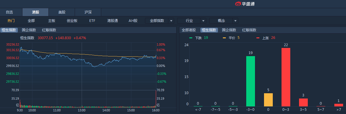 昨日恒指早盘高开0.61%,小幅冲高后逐步回落,午后再度走强并企稳,最终收涨0.47%报30077.15点,全日成交额达1215.14亿。国企指数涨0.87%报11793.65点,红筹指数涨0.17%报4737.07点。