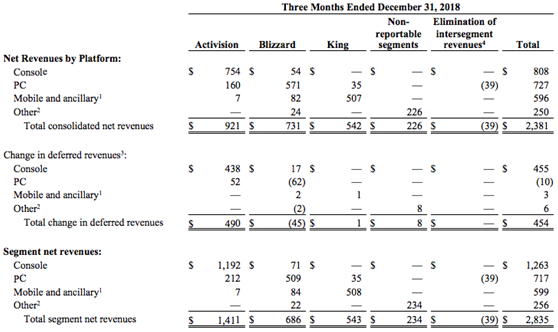 动视暴雪旗下的King主要负责手游业务,《糖果消消乐》就是其王牌作品,但动视和暴雪移动业务收入较低,其中动视为700万美元,暴雪为8400万美元。目前,公司已经计划在自己的知名IP上增加20%的开发来布局电子竞技以及手游业务。