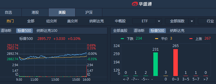 周一美股涨跌不一,标普涨0.08%,道指跌0.32%,纳指涨0.17%。苹果收涨1.57%,连涨9天,触及200美元整数关口。