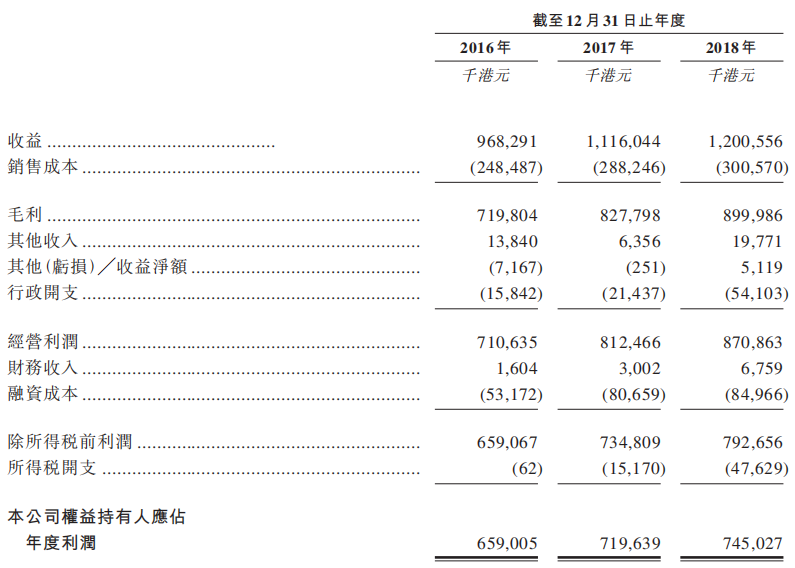 招股书显示,公司将根据年度经调整EBITDA减去相关税费和成本来计算可分派收入,以此计算,过去三年可分派收入分别为5亿、5.94亿和6.78亿港元,而同期公司营收为9.68亿、11.16亿和12亿港元。可分派收入均超过当年营收的50%。