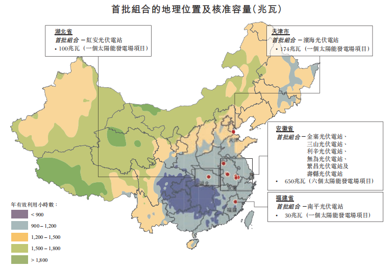 公司的经营模式是拥有、管理并运营旗下的太阳能发电厂,客户均为国家电网的地方附属公司。公司通过供应电力并获取收益,首批太阳能电厂組合位于安徽省、天津市、福建省和湖北省,限电风险较低。