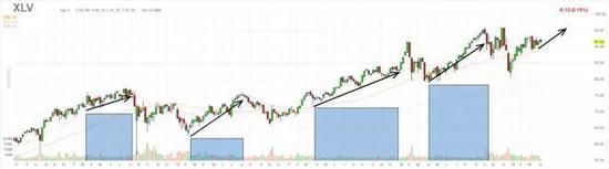 该分析首先从2015年至今的医疗保健选择部门SPDR基金(XLV)的前四年开始。你可以看到一个明确的季节性模式,我已经分析了在我的 ETF 季节性文章和一个足够强大,今年再次重复。 4月份的突破现象一直为医疗保健部门带来最好的结果。 使用 XLV ,您可以看到每年从4月开始的收益以蓝色突出显示。