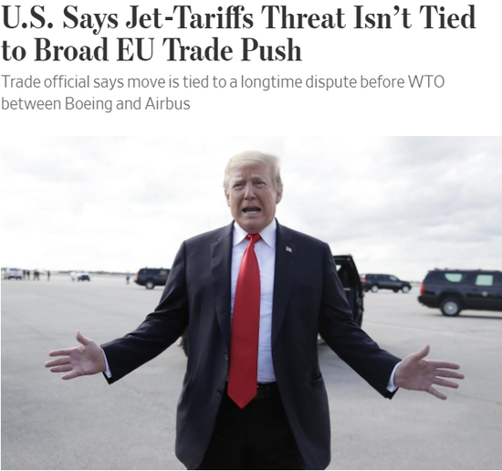 在政府周二试图缓解双方紧张关系之前,美国贸易代表办公室周一晚在声明中称将启动一个流程,可能导致对欧盟产品加征关税,美国波音公司与欧洲空中客车集团在世界贸易组织(WTO)的争端可能允许采取这一报复性措施。
