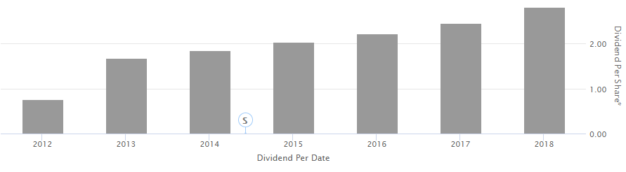 公司4月底将公布5月分红计划,通常来讲,5月分红会相比上期增加。上一季度分红为0.73美元,而2019财年分红可能也会保持较大增长。最近一年的分红增长率为15.87%。而随着股价回升,如果公司希望保持股息率,大幅提高分红将是大概率事件,这也是近期投资者值得期待的事件。