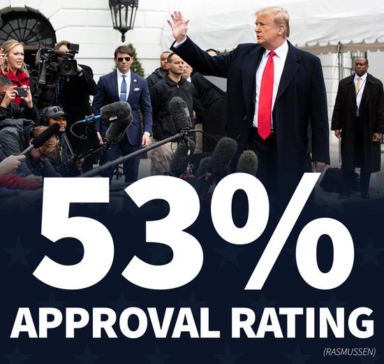 值得一提的是,每天追踪美国总统支持率的Rasmussen公司4月9日发布的最新民调报告显示,特朗普的支持率已达到53%,重新站上2017年3月3日的高点。