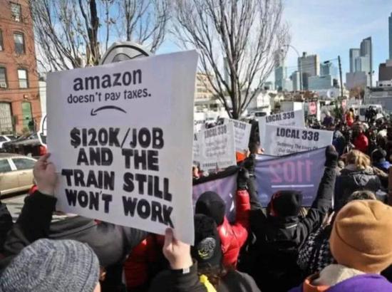 由于持续依赖规模扩张,亚马逊长期亏损,一直以来只缴纳少得可怜的联邦税。在西雅图深耕近十年,亚马逊导致当地房价上涨75%,交通负荷上升显著,但其对公租房建设、改善交通系统等公益责任的积极性不高。就在前一段时间,当亚马逊宣布要在纽约新建的总部,收到的却是纽约市民的抗议,原因是亚马逊建这个总部,纽约州政府不但将对亚马逊免税,还将对亚马逊补贴近30亿美元。