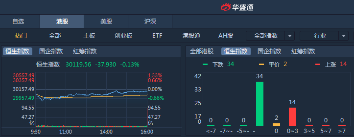 昨日恒指跌37.93点或0.13%,报30119.56点,全日成交额达1126.16亿。国企指数跌0.43%,红筹指数跌0.46%。沪港通南向资金流入8.48亿元。深港通南向资金流入9.79亿元。