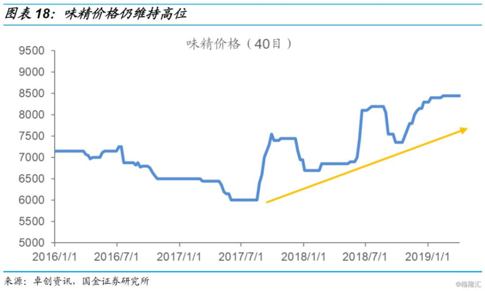 而I+G作为味精之王,一方面可以与味精协同使用,增鲜效果大幅提升,同时由于极少的产品用量就可以达到极佳效果,可以部分替代味精产品,可以说I+G是味精产品的协同兼替代品。在调味产品复配过程中,I+G成味效果更好,相对成本较低,具有较高的产品性价比。预期未来味精行业供需格局改善,作为协同替代品,I+G亦将受到良好的行业支撑,从而具备较为坚实涨价动力。