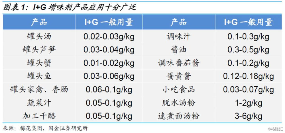 经过推广,I+G在鸡精、鸡粉、增鲜味精、酱油、调味包等复合调味品中的应用比例不断提升,产品的应用范围也在持续扩展。