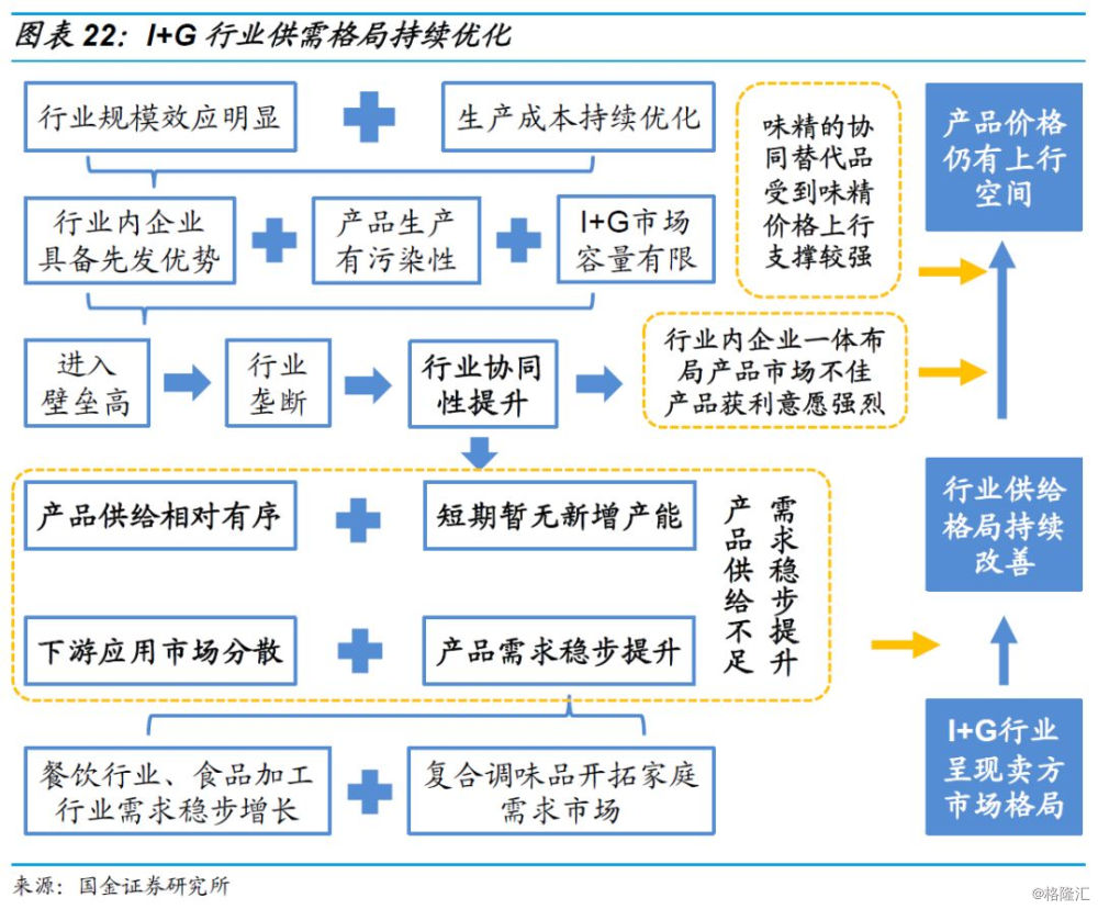 而在寡头市场中,新建产能并不意味着实际供给增多,行业协同性布局有望维持行业稳步发展。而I+G产品凭借极强的产品调味效果市场需求仍在稳步增长,预期如未来行业扩展有序,产品仍将保持长时间的稳步发展。