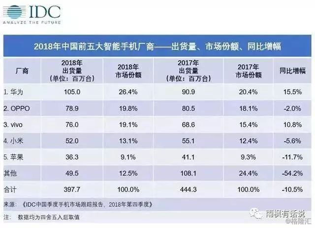 按照IDC的统计,2018年,小米在国内智能手机市场的份额仅有13.1%,大幅度落后于OPPO的19.8%和vivo的19.1%。