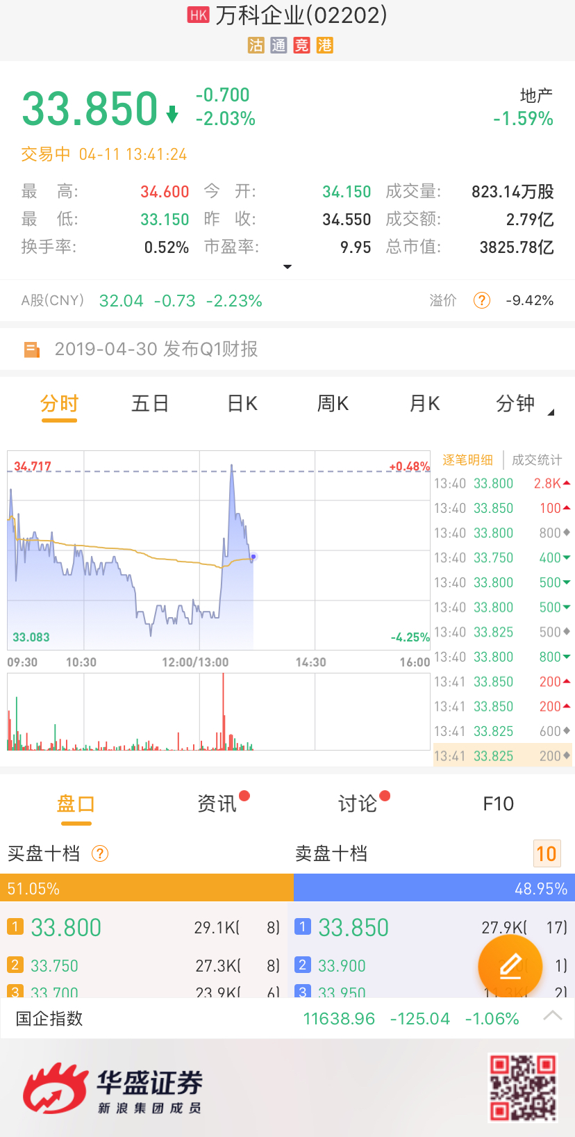 万科A及万科企业一度翻红,不过现在冲高回落,目前万科企业跌2%。