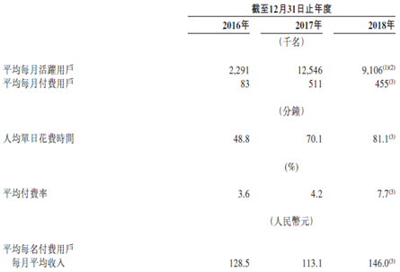 2017年平台平均每月活跃用户分别为1254.6万名,到了2018年平均每月活跃用户下降至910.6万,同比下降27.42%;2017年平台平均每月付费用户为51.1万,2018年下降至45.5万,同比下降10.95%。