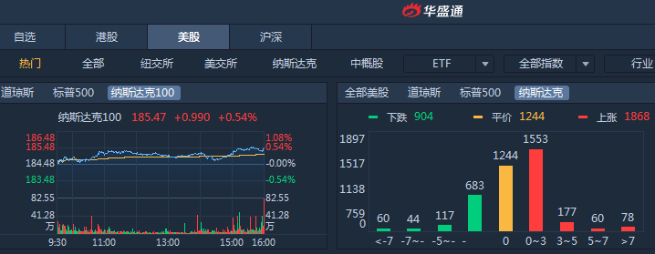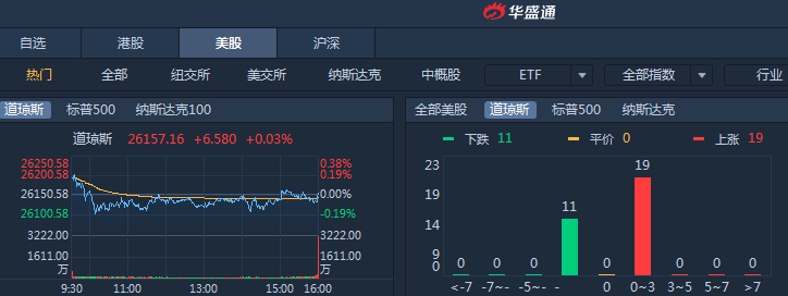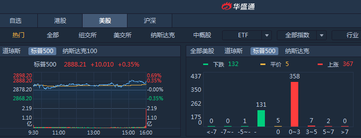 美联储继续鸽派,周三三大股指小幅收涨,标普500指数收涨0.35%,道指收涨0.03%,纳指收涨0.69%。