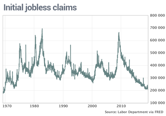 美国劳工部报告称,截至4月6日当周美国首次申请失业救济人数为19.6万人,为1969年来最低水平。截至3月30日当周的持续领取失业救济人数为171.3万人,预期173.5万。