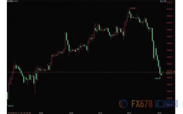 周四(4月12日)纽市盘中,美元指数大幅走高,刷新日内高点至97.19;金价重挫,现货黄金较日高回落近20美元,刷新近四日低点至1289.5美元/盎司,此前连续三日的涨幅全部回吐,黄金价格有望创出两周来最大跌幅,此前公布的美国数据强于预期,使美联储降息理由减弱,从而降低黄金的保值魅力;另外伴随美元反弹,其他主要贵金属也下跌。