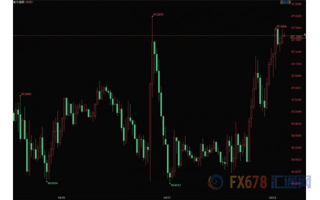 美元指数大幅走高,刷新日内高点至97.19。