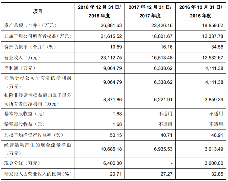 2016年至2018年,心脉医疗营业收入分别为12,532.67 万元、16,513.48 万元及 23,112.75万元,年均复合增长率达到35%以上;实现净利润分别为4111.38万元、6,338.62万元及9064.79万元,年均复合增长率达到48%以上。截至2019年 3月31日,公司拥有已授权的境内外专利 86 项,其中境内发明专利43项、境外发明专利25项。