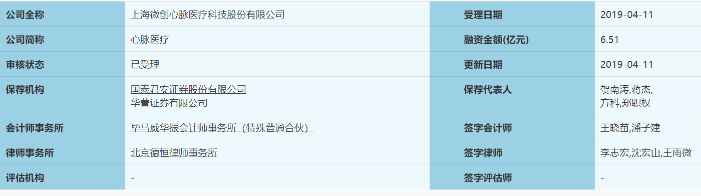 4月11日,上海微创心脉医疗科技股份有限公司(下称“心脉医疗”)申请科创板的材料获上交所受理。