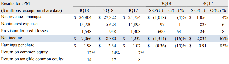 收入放缓下,公司Q4实现净利润为40亿美元,EPS为1.98美元,低于预期0.23美元,同时也较环比下降0.36美元。公司ROE同比增加至12%,但低于Q3的14%。