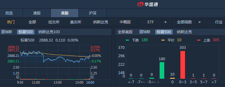 美国3月经济数据好于预期,三大股指近乎收平,医疗保健板块拖累美股。标普500指数收涨0.11点,报2888.32点。道指收跌14.11点,跌幅0.05%,报26143.05点。纳指收跌16.88点,跌幅0.21%,报7947.36点。
